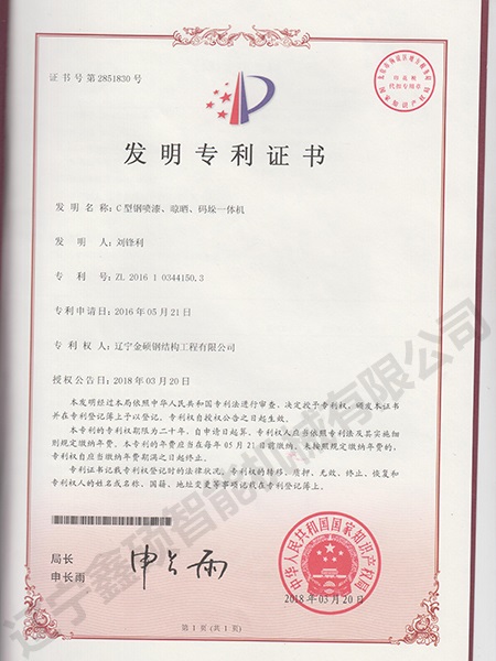 Invention patent of C-beam spray painting, drying and palletizing integrated machine
